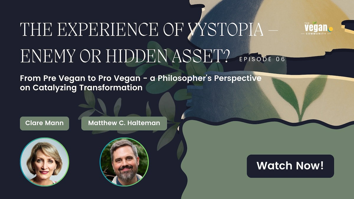Vegan psychologist Clare Mann is joined by philosopher Matthew C. Halteman to explore Vystopia—the anguish of living ethically in a non-vegan world—and how it can become a catalyst for meaningful advocacy.